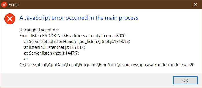 Error: listen EADDRINUSE: address already in use